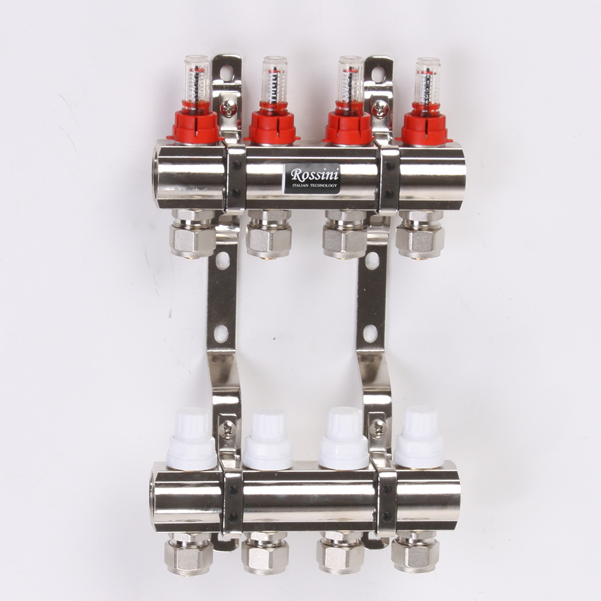 Колектор з витратомірами, термоклапанами і евроконусами 1"x3/4" 4 виходи ROSSINI